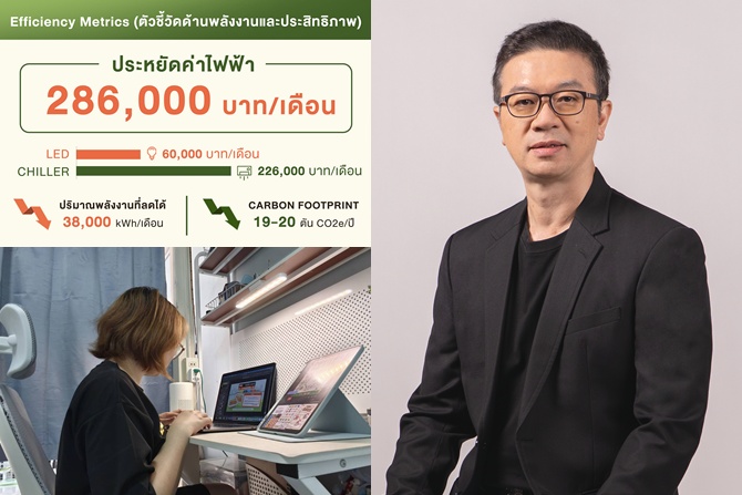 นอกจากนี้ ไทยพีบีเอสยังดำเนินมาตรการเพิ่มประสิทธิภาพด้านพลังงานควบคู่กัน ทั้งการเปลี่ยนหลอดไฟเป็น LED และการปรับปรุงระบบทำความเย็น (Chiller) ซึ่งช่วยลดค่าไฟฟ้าจากระบบ LED ได้ประมาณ 60,000 บาทต่อเดือน และลดค่าไฟฟ้าจากระบบ Chiller ได้ประมาณ 226,000 บาทต่อเดือน รวมถึงช่วยลดการใช้พลังงานไฟฟ้าได้ราว 38,000 กิโลวัตต์ต่อเดือน
