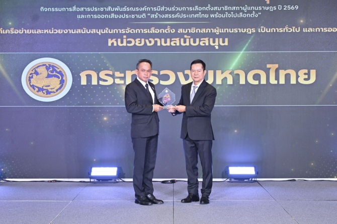 เมื่อวันที่ 24 เมษายน 2569 เวลา 10.00 น. นายอรรษิษฐ์ สัมพันธรัตน์ มอบหมายให้ นายโชตินรินทร์ เกิดสม รองปลัดกระทรวงมหาดไทยด้านบริหาร รับมอบโล่เกียรติคุณในฐานะภาคีเครือข่ายและหน่วยงานสนับสนุนในการจัดการเลือกตั้งสมาชิกสภาผู้แทนราษฎร เป็นการทั่วไปและการออกเสียงประชามติ พร้อมด้วยผู้แทนการไฟฟ้านครหลวง ผู้แทนการไฟฟ้าส่วนภูมิภาค พร้อมกันนี้ นายทรงกลด สว่างวงศ์ ผู้ว่าราชการจังหวัดตรัง นายปิยพงศ์ ชูวงศ์ ผู้ว่าราชการจังหวัดลำพูน และผู้แทนจังหวัดพัทลุง นครนายก นครปฐม สงขลา สุราษฎร์ธานี พัทลุง และจังหวัดนนทบุรี รับมอบโล่จังหวัดที่มีร้อยละผู้มาใช้สิทธิเลือกตั้ง สส. มากที่สุด จังหวัดที่มีจำนวนร้อยละผู้มาใช้สิทธิเลือกตั้งเพิ่มขึ้นจากปี 2566 มากที่สุด และจังหวัดที่มีจำนวนร้อยละบัตรเสียน้อยที่สุด โดยมี นายณรงค์ กลั่นวารินทร์ ประธานกรรมการการเลือกตั้ง เป็นประธานในพิธี พร้อมด้วยนายอนันต์ สุวรรณรัตน์ กรรมการการเลือกตั้ง นายจิรุตม์ วิศาลจิตร กรรมการการเลือกตั้ง นายแสวง บุญมี เลขาธิการคณะกรรมการการเลือกตั้ง ร่วมในพิธี