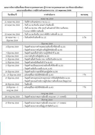 ด้วยคณะกรรมการการเลือกตั้ง ได้เห็นชอบแผนการจัดการเลือกตั้งสมาชิกสภากรุงเทพมหานคร ผู้ว่าราชการกรุงเทพมหานคร สมาชิกสภาเมืองพัทยา และนายกเมืองพัทยา กรณีดำรงตำแหน่งครบวาระ (วันที่ 21 พฤษภาคม 2569) โดยประกาศวันรับสมัครรับเลือกตั้ง ระหว่างวันที่ 28 พฤษภาคม – 1 มิถุนายน 2569 และกำหนดวันเลือกตั้งในวันอาทิตย์ที่ 28 มิถุนายน 2569 (รายละเอียดตามเอกสารแนบ)