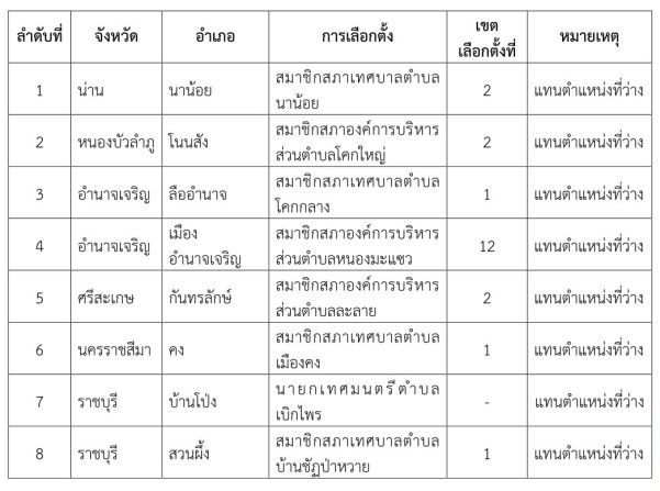 ทั้งนี้ สามารถติดตามร่วมสังเกตการณ์การเลือกตั้งสมาชิกสภาท้องถิ่นหรือผู้บริหารท้องถิ่นข้างต้น หรือสอบถามรายละเอียดเพิ่มเติมได้ที่สำนักงานคณะกรรมการการเลือกตั้ง ประจำจังหวัดที่มีการเลือกตั้งและติดตามข้อมูลข่าวสารได้ทาง www.ect.go.th หรือสอบถามรายละเอียดเพิ่มเติมได้ที่บริการสายด่วน 1444