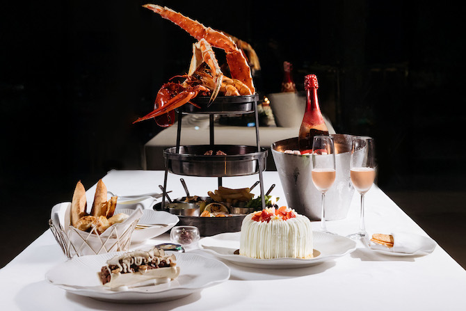 อาทิ ล็อบสเตอร์จากรัฐเมนย่าง, ก้ามปูอลาสก้ารสหวาน, กุ้งลายเสือ, หอยเชลล์สดฮอกไกโดเสิร์ฟความอร่อยพร้อมเนื้อวากิวเซอร์ลอยน์, เนื้อหมูดำเพรซ่า, เนื้อแกะกุนดาไก ทั้งหมดเสิร์ฟพร้อมผักเครื่องเคียง หน่อไม้ฝรั่งย่าง, เฟรนช์ฟรายส์, มันฝรั่งอบ และเห็ด ทานคู่กับเรดไวน์ซอส ฮอลแลนเดสซอส เท่านั้นยังไม่พอเสิร์ฟคู่กับ ซีซาร์ สลัด และเนื้อทาร์ทาร์ พร้อมสปาร์กลิงไวน์ 1 ขวด - น้ำแร่ Acqua Panna หรือน้ำแร่ San Pellegrino 1 ขวด ปิดท้ายด้วย เค้กวันเกิด 1 ปอนด์