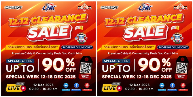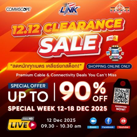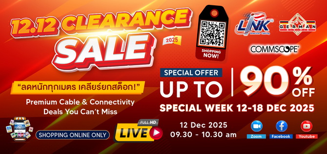 การลดราคาในปีนี้ ลูกค้าจะได้พบกับสินค้าคุณภาพ มาตรฐานระดับสากลในราคาที่ “ถูกจริง แบบล้างสต็อก” ที่ครบวงจรด้วยสายสัญญาณ อุปกรณ์เครือข่าย และผลิตภัณฑ์เทคโนโลยีหลากหลายประเภท ที่ถูกออกแบบมา เพื่อตอบโจทย์ตั้งแต่โครงการขนาดใหญ่ ธุรกิจขนาดกลาง ไปจนถึงระบบโครงข่ายพื้นฐานสำหรับการใช้งานในครัวเรือน จากสินค้าแบรนด์ LINK AMERICAN CABLING & 19”GERMANY EXPORT RACK, อุปกรณ์เครือข่ายจาก COMMSCOPE, รวมถึงสินค้า และอุปกรณ์ ในทุกกลุ่มโซลูชัน ที่คัดสรรมาเพื่อมอบความคุ้มค่าจริงในทุกชิ้น