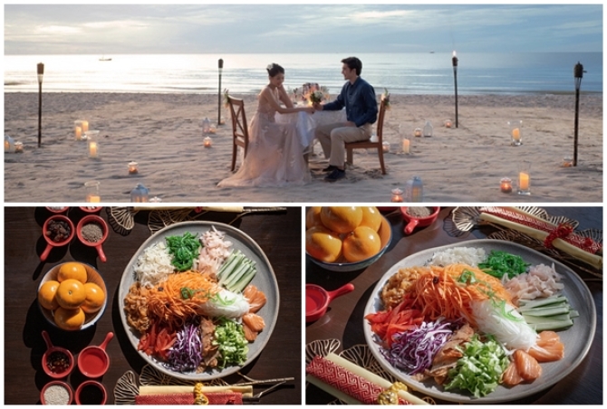 พิธี “หล่อเฮ” หรือการคลุกหยี่ซัง เปรียบเสมือนการอวยพรให้ชีวิตก้าวขึ้นสู่สิ่งดี ๆ เต็มไปด้วยโชคลาภและความสำเร็จ ยีซังสูตรพิเศษของทางรีสอร์ทโดดเด่นด้วยการคัดสรรแซลมอนคุณภาพ ผักดองหลากชนิด และแมงกะพรุนเย็น เสริมรสด้วยน้ำมันงาหอมลงตัว พร้อมตัวเลือกมังสวิรัติที่ใช้โปรตีนจากพืชในรูปแบบ “ปลา” ที่ให้สัมผัสคล้ายแซลมอน