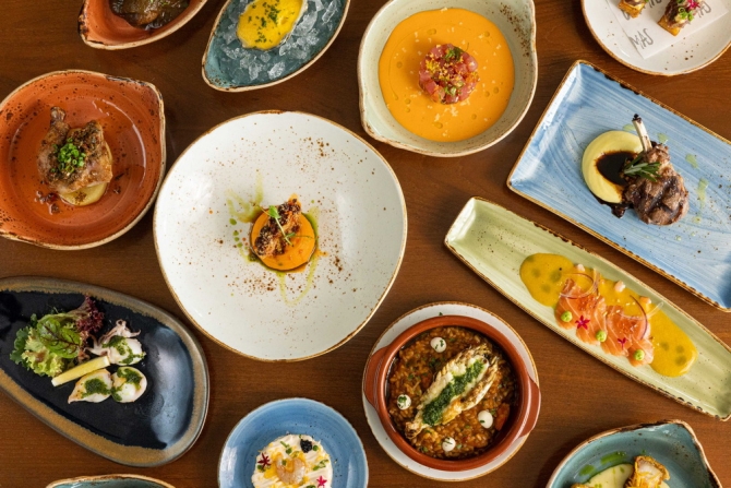 เริ่มต้นมื้อพิเศษด้วยทาปาสหลากสไตล์ที่จัดเต็มทั้งรสชาติและสีสัน ต่อด้วยเมนูจานหลักสูตรต้นตำรับที่โดดเด่นด้วยความเข้มข้นแบบสเปนแท้ ทุกจานสะท้อนความประณีตและความหลงใหลในศิลปะการทำอาหารของเชฟ อาทิ อาหารเรียกน้ำย่อยอย่าง ทาร์ทาร์เนื้อวัวเสิร์ฟคู่กับมิลเฟยมันฝรั่งและซอสมายองเนสทรัฟเฟิล, ทูน่าทาร์ทาร์เสิร์ฟพร้อมครีมมะเขือเทศสไตล์คอร์โดบา, สลัดปลาหมึกกับน้ำสลัดสไตล์กาลิเซีย เป็นต้น ต่อด้วยเมนูอาหารจานหลักที่พร้อมเสิร์ฟถึง 12 เมนูสั่งได้ไม่อั้น อาทิ คร็อกเก็ตแฮมอิเบริโกและเห็ด, แก้มเนื้อวากิวตุ๋นสไตล์สเปน, ปลากะพงสไตล์กาลิเซียเสิร์ฟพร้อมพิวเรดอกกะหล่ำและน้ำมันกระเทียมปาปริก้า, กุ้งผัดกระเทียมสไตล์สเปน และซี่โครงแกะย่างสไตล์สเปน เป็นต้น ปิดท้ายด้วยของหวานสไตล์สเปน อาทิ ชูโรสทอดกรอบเสิร์ฟพร้อมซอสช็อกโกแลต, คาตาลันครีม อีกทั้งมุมชีส มุมโคลด์คัท และอื่นๆอีกมาก ราคาเพียงท่านละ 1,790 บาท++ (ไม่รวมเครื่องดื่ม) สามารถซื้อแพ็กเกจเครื่องดื่มราคาเริ่มต้น 149 บาท++ (น้ำอัดลม น้ำเปล่า กาแฟ และชา) (ราคานี้ไม่รวมอัตราภาษีและค่าบริการ)