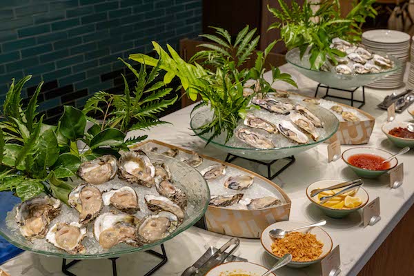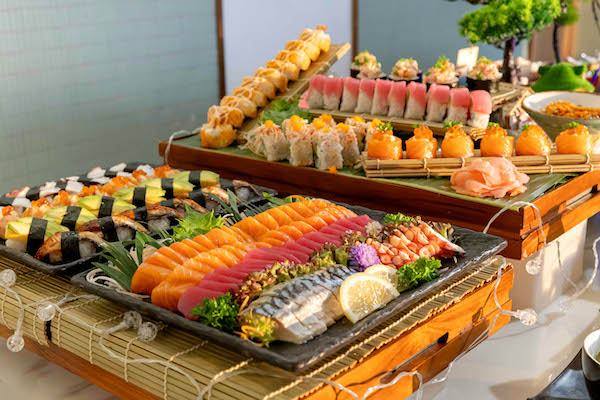 อาทิ มุมสลัดออร์แกนิค, มุมอาหารญี่ปุ่น ซูชิ ซาชิมินานาชนิด, ซุป, ซีฟู้ดออนไอซ์ กั้งกระดาน กุ้งแม่น้ำ หอยแมลงภู่ หอยหวาน ปูม้า และไข่ปลาแซลมอน ห้ามพลาดกับเมนูไฮไลท์ ปลาแซลมอนอบ, ปลาหมึกย่าง, กุ้งแม่น้ำย่าง, ปูนิ่มทอดกระเทียม, ลิงกวินี่ซีฟู้ด, ซีฟู้ด กราแตง, หอยนางรมสุราษฎร์ธานี, หอยนางรมเกาหลี, หอยนางรมฝรั่งเศส เป็นต้น ปิดท้ายความอร่อยกับขนมหวานทั้งไทยและอิตาเลียน ให้ทุกมื้อค่ำของคุณเต็มไปด้วยความสด หวาน ฉ่ำ