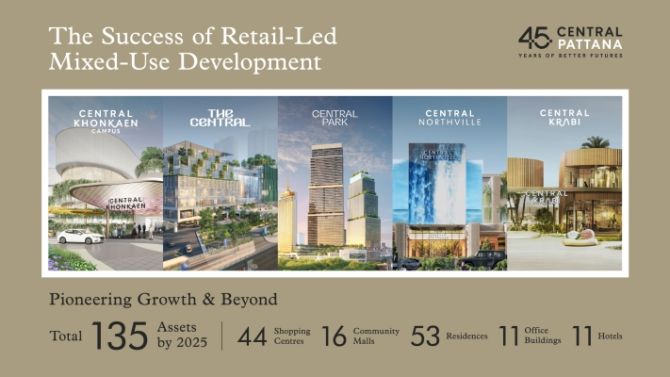 นางสาววัลยา จิราธิวัฒน์ กรรมการผู้จัดการใหญ่และประธานเจ้าหน้าที่บริหาร บมจ.เซ็นทรัลพัฒนา กล่าวว่า “ตลอด 45 ปีที่ผ่านมา เซ็นทรัลพัฒนาภูมิใจที่ได้พัฒนาเมืองและย่านสำคัญทั่วประเทศ ผ่านโครงการที่หลากหลาย ทั้งศูนย์การค้า ที่อยู่อาศัย อาคารสำนักงาน และโรงแรม โดยขับเคลื่อนด้วยกลยุทธ์ Retail-Led Mixed-Use Development ที่เชื่อมโยงทุกองค์ประกอบของเมือง และสร้างการเติบโตอย่างแข็งแกร่งให้กับทั้งธุรกิจและ Ecosystem