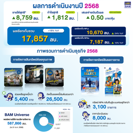 BAM โชว์ฟอร์มแกร่ง! กำไรปี 68 พุ่ง 1,812 ล้านบาท เคาะจ่ายปันผล 0.50 บาทต่อหุ้น