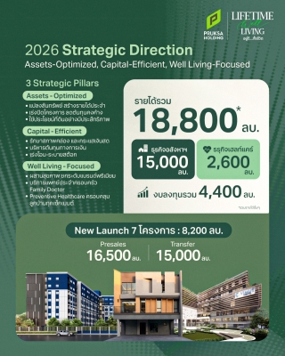 พฤกษา โฮลดิ้ง โชว์ความเหนือชั้นในการปรับตัวเชิงกลยุทธ์ท่ามกลางความผันผวนของตลาด สะท้อนความสำเร็จของกลยุทธ์ Reshaping Portfolio ในปี 2568 จากการปรับพอร์ตโฟลิโอสู่ตลาดระดับกลางถึงบน ลดสัดส่วนธุรกิจที่ไม่ใช่แกนหลัก และยกระดับคุณภาพโครงการให้สอดรับกับกำลังซื้อ ส่งผลให้บริษัทฯ สามารถรักษาอัตรากำไรขั้นต้น (GPM) ได้สูงถึง 33.3% จากรายได้รวม 14,983 ล้านบาท ท่ามกลางภาวะตลาดที่ผันผวน ตอกย้ำประสิทธิภาพการบริหารพอร์ตและวินัยทางการเงินอย่างเป็นรูปธรรม พร้อมเปิดฉากปี 69 ด้วยกลยุทธ์ใหม่ภายใต้กรอบ “Asset-Optimized, Capital-Efficient, Well Living-Focused” มุ่งเปลี่ยนสินทรัพย์ให้เป็นโอกาสเพื่อสร้างรายได้ระยะยาว บริหารเงินทุนอย่างมีวินัย ยกระดับแบรนด์ผ่านความร่วมมือด้านสุขภาพและบริการครบวงจร ตั้งเป้าปี 69 กวาดรายได้ 18,800 ล้านบาท ธุรกิจเรียลเอสเตท เตรียมเปิดตัว 7 โครงการใหม่ มูลค่ารวม 8,200 ล้านบาท ดันรายได้ 15,000 ล้านบาท ส่วนธุรกิจ เฮลท์แคร์เครือวิมุตลุยเดินหน้ากลยุทธ์ความเป็นเลิศ ปักธงสร้างรายได้ 2,600 ล้านบาท