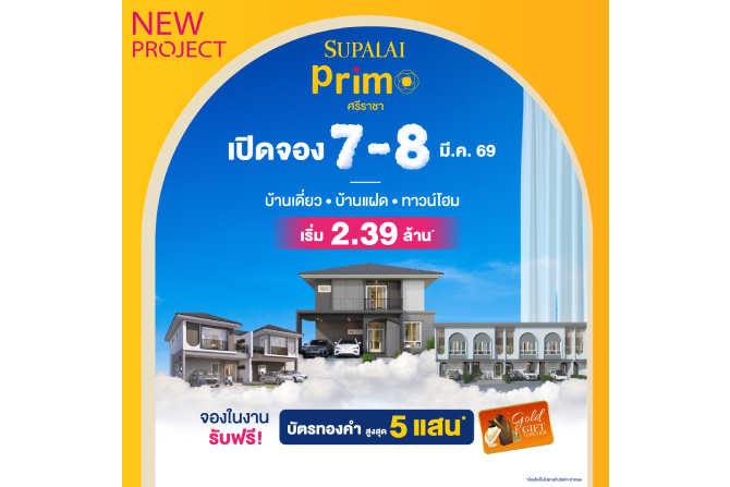บมจ.ศุภาลัย เร่งเครื่องรุกตลาดที่อยู่อาศัยภาคตะวันออกเต็มกำลัง เสริมความแข็งแกร่งฐานตลาดศรีราชา เมืองเศรษฐกิจสำคัญที่มีศักยภาพเติบโตสูงระยะยาว เปิดตัวโครงการใหม่ “ศุภาลัย พรีโม่ ศรีราชา” ภายใต้แนวคิด Cloudy in Your Harmony – สัมผัสชีวิตที่ใช่ ในสไตล์ที่เป็นคุณ พร้อมฟังก์ชันที่ตอบโจทย์การใช้ชีวิตของคนรุ่นใหม่ ครบครันทั้งบ้านเดี่ยว บ้านแฝด และทาวน์โฮม ราคาเริ่มต้น 2.39 ล้านบาท เตรียมเปิดจองครั้งแรกวันที่ 7–8 มีนาคม 2569 นี้