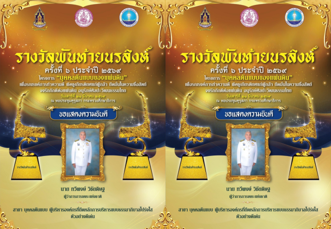 นายทวีพงษ์ วิชัยดิษฐ ผู้ว่าการการเคหะแห่งชาติ ได้รับรางวัล “พันท้ายนรสิงห์ ครั้งที่ 6 ประจำปี 2569” จากโครงการ “บุคคลต้นแบบของแผ่นดิน” โดยได้รับการคัดเลือกในสาขาบุคคลต้นแบบประเภทผู้บริหารองค์กร จากการบริหารงานตามหลักธรรมาภิบาล โปร่งใสและตรวจสอบได้