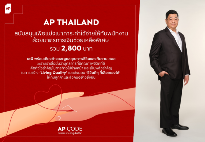 เอพี ไทยแลนด์ สนับสนุนเงินช่วยเหลือพิเศษเดือนเมษายน รวม 2,800 บาท เพื่อแบ่งเบาภาระค่าใช้จ่าย