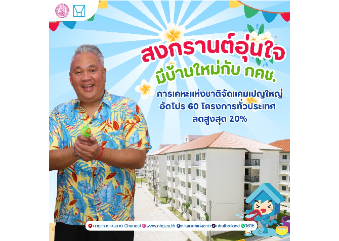 การเคหะแห่งชาติ เดินหน้ามาตรการกระตุ้นการมีที่อยู่อาศัยของประชาชน จัดแคมเปญ “สงกรานต์อุ่นใจ มีบ้านใหม่กับ กคช. 2026” นำโครงการที่อยู่อาศัยพร้อมอยู่ทั่วประเทศเข้าร่วมกว่า 60 โครงการ มอบส่วนลดสูงสุด 20% พร้อมเงื่อนไขพิเศษ วางมัดจำเริ่มต้นเพียง 1,000 บาท อัตราดอกเบี้ยเริ่มต้น 2.50% และผ่อนชำระได้นานสูงสุด 40 ปี ระหว่างวันนี้ถึง 30 มิถุนายน 2569