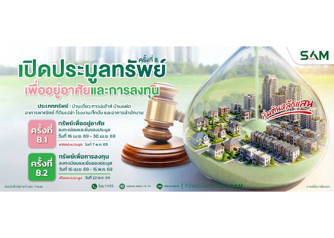 SAM ยกทัพทรัพย์ NPA ทำเลพรีเมียมทั่วไทยกว่า 50 รายการ มูลค่ารวมกว่า 154 ลบ.เปิดประมูลราคาพิเศษ พ.ค.นี้