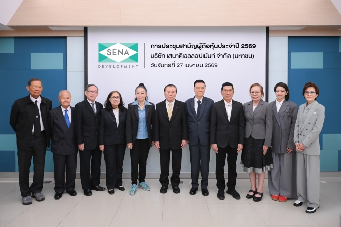 บริษัท เสนาดีเวลลอปเม้นท์ จำกัด (มหาชน) หรือ SENA จัดการประชุมสามัญผู้ถือหุ้นประจำปี 2569 ผ่านระบบสื่ออิเล็กทรอนิกส์ (E-AGM) ณ อาคารธัญลักษณ์ภาคย์ โดยมี นายวิเชียร รัตนะพีระพงศ์ ประธานกรรมการบริษัทและกรรมการอิสระ, ศาสตราจารย์ไชยยศ เหมะรัชตะ ประธานกรรมการตรวจสอบและกรรมการอิสระ และ ผศ.ดร.เกษรา ธัญลักษณ์ภาคย์ กรรมการและกรรมการผู้จัดการ พร้อมด้วยคณะกรรมการบริษัท โดยที่ประชุมได้รับทราบผลการดำเนินงานปี 2568 ซึ่งแม้ภาวะตลาดยังคงเผชิญแรงกดดันจากเศรษฐกิจ แต่บริษัทยังคงสามารถทำกำไรได้อย่างต่อเนื่อง สะท้อนถึงประสิทธิภาพในการบริหารต้นทุนและความแข็งแกร่งของโครงสร้างธุรกิจในระยะยาว
