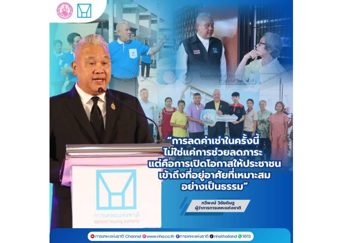 นายทวีพงษ์ วิชัยดิษฐ ผู้ว่าการการเคหะแห่งชาติ เปิดเผยว่า กคช. ได้ขยายโปรโมชันลดค่าเช่าที่อยู่อาศัยใน 25 โครงการทั่วประเทศ โดยลดค่าเช่า 300–500 บาทต่อหน่วยต่อเดือน จากอัตราปกติ 1,200–2,600 บาทต่อเดือน ครอบคลุมระยะเวลาตั้งแต่เดือนมกราคมถึงวันที่ 31 ธันวาคม 2569 เพื่อช่วยลดภาระค่าครองชีพและเพิ่มโอกาสการเข้าถึงที่อยู่อาศัยอย่างเหมาะสม