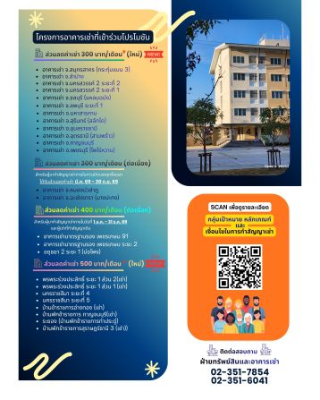ส่วนโครงการที่ได้รับส่วนลด 400 บาทต่อเดือน ได้แก่ อาคารเช่ามาตรฐานรอง เพชรเกษม 91, เพชรเกษม ระยะที่ 2 และอยุธยา 2 ระยะที่ 1 (บ่อโพง) สำหรับผู้ที่ทำสัญญาเช่าภายในช่วงเดือนมกราคมถึงวันที่ 31 ธันวาคม 2569