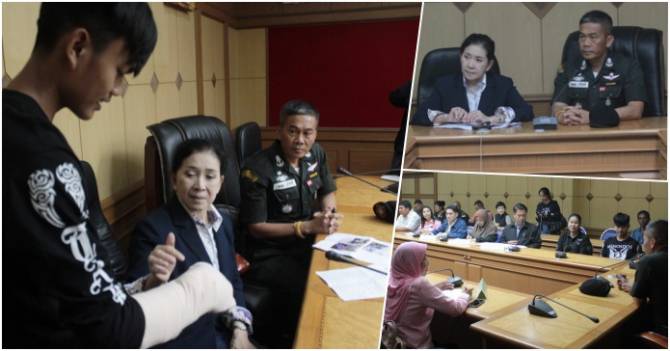 เมื่อเวลา 14.30 น.วันนี้ ( 5 ก.พ.62 ) ที่ห้องประชุมกองบังคับการตำรวจภูธรจังหวัดยะลา อ.เมือง จ.ยะลา นางปวีณา หงสกุล ประธานมูลนิธิปวีณาหงสกุลเพื่อเด็กและสตรี ได้นำ นายวิรัตน์ จันทร์มั่น อายุ 52 ปี นางจิรวรรณ จันทร์มั่น อายุ 40 ปี และ นายกิตติ นามวิเศษ อายุ 18 ปี บุตรชายที่ได้รับบาดเจ็บจากเหตุถูกเครื่องตัดยางพารา ตัดเอานิ้วขาด 3 นิ้ว และกระดูกแตกถึงข้อศอก เข้าพบกับ พล.ต.ต.กฤษฎา แก้วจันดี ผบก.ภ.จว.ยะลา พร้อมด้วย นางสุภาพร สุฒิศาสตร์ ผอ. พัฒนาสังคมและความมั่นคงของมนุษย์จังหวัดยะลา เจ้าหน้าที่จากประกันสังคมจังหวัดยะลา สำนักงานแรงงานจังหวัดยะลา และ สำนักงานยุติธรรมจังหวัดยะลา เพื่อขอความเป็นธรรมหลังนายจ้างช่วยเงิน 2 หมื่นบาท เป็นค่ารักษาแต่ต้องแลกกับการเป็นคนพิการตลอดชีวิตจนคิดอยากฆ่าตัวตาย