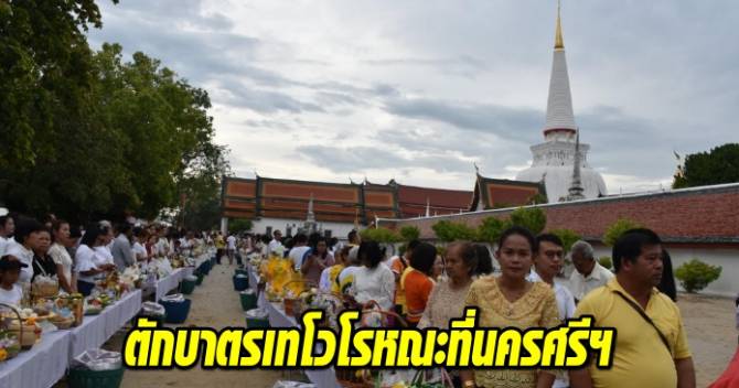พุทธศาสนิกชนชาวนครศรีฯร่วมตักบาตรเทโวโรหณะ เนื่องในเทศกาลออกพรรษา ณ วัดพระมหาธาตุฯ