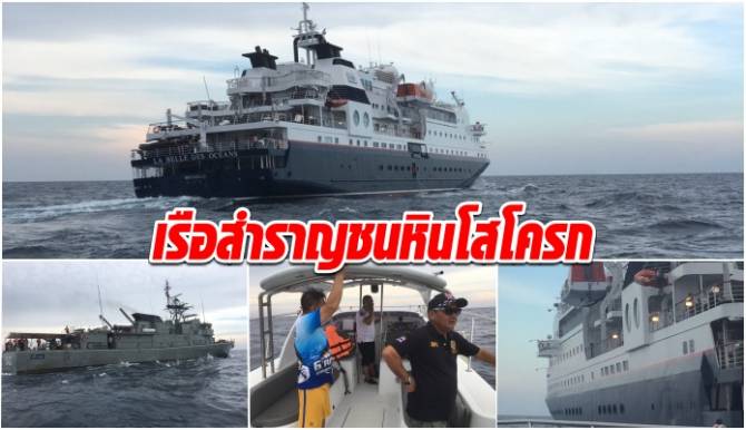 ทหารเรือ เข้าช่วยเรือสำราญชนหินโสโครกเกยตื้นที่กระบี่ นทท.บนเรือปลอดภัย