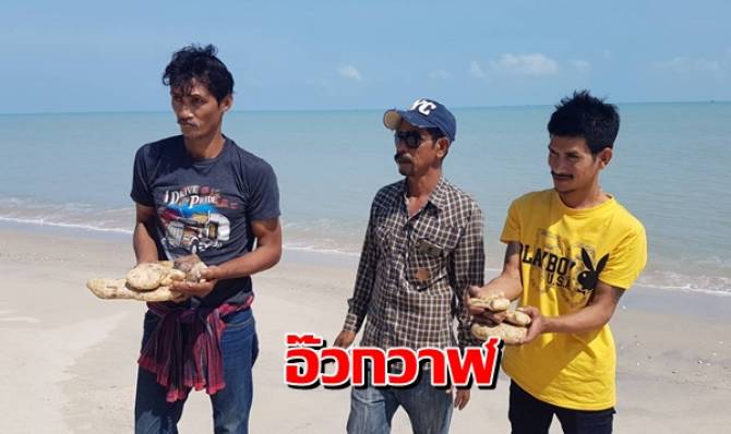 ฮือฮา! พบ "อ๊วกวาฬ" 12 ก้อน หนักกว่า 3 กก. ลอยเกยชายหาดเมืองคอน