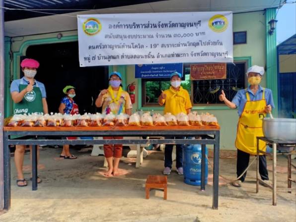 ผู้ใหญ่บ้านหมู่ 7 บ้านลูกแก ต.ดอนขมิ้น อ.ท่ามะกา จ.กาญจนบุรี ทำอาหารแจกให้ลูกบ้านกินอิ่มทุกวันบรรเทาความเดือดร้อนช่วงโควิด-19 ตามโครงการ “ครัวคนกาญจน์ ต้านโควิด” เราจะผ่านวิกฤติไปด้วยกันของผู้ว่าราชการจังหวัดกาญจนบุรี
