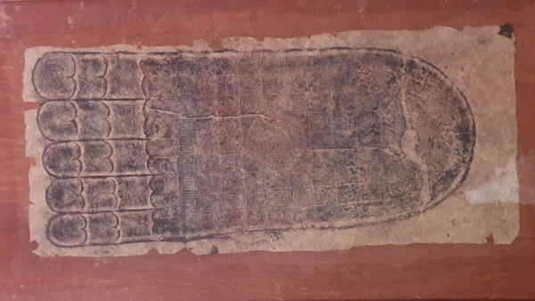 ฮือฮา! รอยพระบาทคู่ บนกระดาษสาโบราณ อายุกว่าพันปี ที่วัดป่าสักคำ