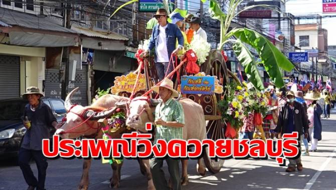 ประวัติความเป็นมาของประเพณีวิ่งควายชลบุรี ซึ่งมีมาตั้งแต่สมัยบรรพการ สืบทอดมาหลายช่วง ซึ่งเป็นวันใกล้สิ้นฤดูฝน จะย่างเข้าฤดูหนาว เป็นการที่ชาวนาไถหว่านเสร็จเรียบร้อย ขึ้น 14 ค่ำ ก็จะนำข่าวของดอกไม้มาวัดใหญ่อินทาราม อ.เมือง จ.ชลบุรี และก็จะเอาควายมาวิ่งอวดกัน และแข่งขันไปที่สระน้ำเพื่อเก็บดอกบัว ชาวนาก็นึกสนุก ก็เอาควายมาวิ่งแข่งกัน มาอวดความสวยงามควายว่า ควายใครสวยหรือตัวใหญ่กว่ากัน สร้างความสามัคคี