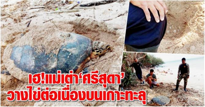 เฮ! แม่เต่า“ศรีสุดา”ขึ้นวางไข่ต่อเนื่องบนเกาะทะลุ