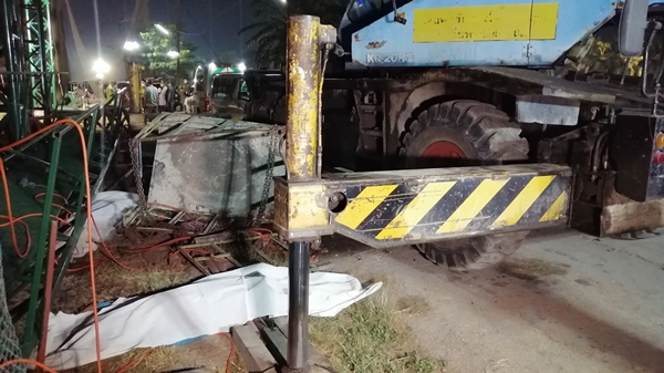 ที่เกิดเหตุพบรถเครนยกก้านเครนอยู่สูงประมาณ 25 เมตร และที่ด้านล่างพบศพผู้เสียชีวิตเป็นชายจำนวน 2 ราย ทราบชื่อนายเพียว อ๋อง อายุ 26 ปี สัญชาติเมียนม่า(เสื้อสีฟ้าอ่อน) และนาย ฮอง วินนาย อายุ26 ปี สัญชาติเมียนม่า(ใส่เสื้อสีฟ้าเข้ม) ซึ่งสภาพศพทั้งสองคนแขนขาหัก