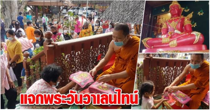 วันวาเลนไทน์แห่รับแจกผ้ายันต์ล็อกเก็ตหลวงพ่อสีชมพู