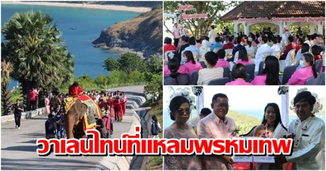 วันที่ 14 ก.พ. 64 ที่แหลมพรหมเทพ ตำบลราไวย์ อำเภอเมืองภูเก็ต จังหวัดภูเก็ต ได้มีการจัดพิธีจดทะเบียนสมรสจำนวน32คู่ ซึ่งบางคู่ได้พาลูกตัวเล็กๆ มาร่วมเป็นสักขีพยานด้วย ซึ่งก่อนจะมีพิธีจดทะเบียนสมรสได้มีการจัดขบวนขันหมากโดยนำช้าง จำนวน 2 เชือก มาร่วมขบวนแห่ขันหมากเพื่อความเป็นสิริมงคลแก่คู่บ่าว-สาวทำให้บรรยากาศการจดทะเบียนสมรสในวันนี้มีความอบอุ่นยิ่งและอบอวลไปด้วยความรัก โดยมีว้าที่ร.ต.วิกรมจากที่ และนาย ปิยะพงศ์ ชูวงศ์ รองผู้ว่าราชการจังหวัดภูเก็ต ผู้พิพากษาหัวหน้าศาลเยาวชนและครอบครัวจังหวัดภูเก็ต และบรรดาญาติทั้งฝ่ายเจ้าบ่าว และเจ้าสาวร่วมเป็นสักขีพยานจำนวนมาก