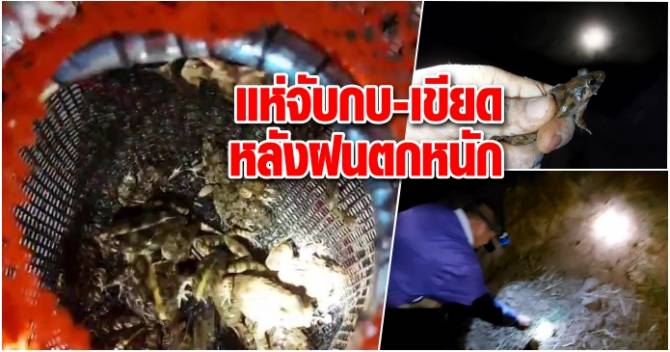 ชาวบ้านแห่จับกบ-เขียดหลังฝนตกหนัก