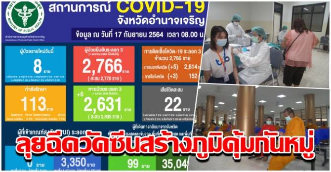อำนาจเจริญติดโควิด 8 ราย ลุยฉีดวัคซีนสร้างภูมิคุ้มกันหมู่