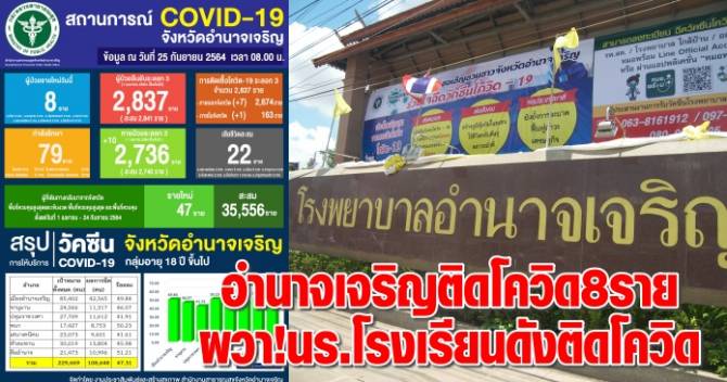 ส่วนที่มีข่าวตามสังคมโซเซียลเกี่ยวกับ มีนักเรียนชาย โรงเรียนดังแห่งหนึ่งในจังหวัดอำนาจเจริญ ติดโควิด 19 เมื่อวันศุกร์ที่ 24 ก.ย.64ที่ผ่านมา ในขณะที่โรงเรียนดังแห่งนี้ พึ่งเปิดเรียนมาไม่กี่วัน โดยเปิดการเรียนการสอนตั้งแต่ระดับชั้น ม.1–ม.6 มีนักเรียนกว่า 3,000 คน ซึ่งจากข่าวดังกล่าว ทำให้นักเรียนกว่า 3,000 คน เป็นกลุ่มเสี่ยงที่จะติดเชื้อทันที และ ยังไม่ได้รับการชี้แจง จากหน่วยงานที่เกี่ยวข้องแต่อย่างใด