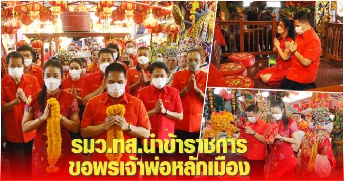รมว.ทส.นำข้าราชการขอพรเจ้าพ่อหลักเมืองตีระฆังใหญ่ที่สุดในประเทศไทย