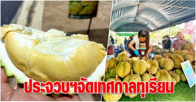งานทุเรียนเขาจ้าว วันที่ 29 มิ.ย.- 3 ก.ค.65 ณ ที่ว่าการอำเภอปราณบุรี ราคาจำหน่าย 190 - 250 บาท/กิโลกรัม
