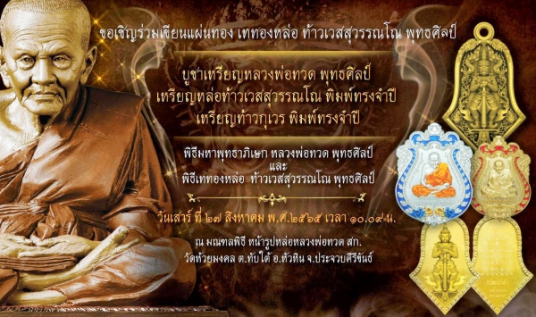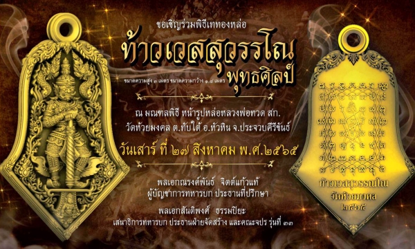 สำหรับโครงการจัดสร้างวัตถุมงคล หลวงพ่อทวด รุ่นพุทธศิลป์ และ ท้าวเวสสุวรรณโณ พุทธศิลป์ เพื่อนำเงินรายได้ส่วนหนึ่งนำมาบูรณะปฎิสังขรณ์ เสนาสนะสงฆ์ วัดห้วยมงคล อ.หัวหิน และจัดซื้อเครื่องมือแพทย์มอบให้กับโรงพยาบาลที่ขาดแคลน โดยประกอบพิธีบวงสรวง ณ สถูป บรรจุอัฐิ หลวงพ่อทวด วัดช้างไห้ ต.ควนโนรี อ.โคกโพธิ์ จ.ปัตตานี เมื่อวันที่ 2 กรกฎาคม 2565 และจะประกอบพิธีเทวาพุทธาภิเษกวาระที่ 2 ณ ณฑลพิธี หน้าหลวงพ่อทวดองค์ใหญ่ อ.หัวหิน จ.ประจวบฯ วันที่ 27 สิงหาคมนี้ สำหรับผู้ที่สนใจสั่งจองวัตถุมงคล “หลวงพ่อทวด รุ่นพุทธศิลป์” สามารถขอทราบรายละเอียดเพิ่มเติมได้ที่ศูนย์ประสานงานโครงการ หลวงพ่อทวดพุทธศิลป์ 65 วัดห้วยมงคล เบอร์โทร : 0835959441, 0922617141