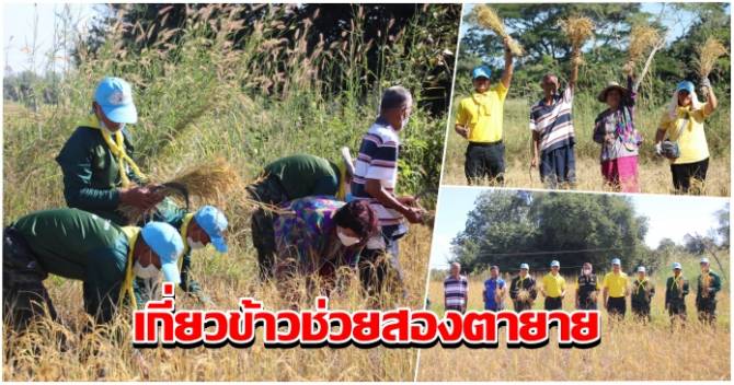 ทหารจิตอาสาจับเคียวเกี่ยวข้าวช่วยสองตายาย กว่า 5 ไร่