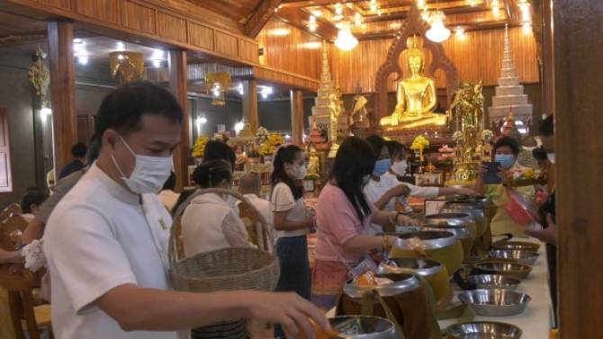 อุบลฯทำบุญตักบาตร ตามโครงการผู้ว่าฯ พาเข้าวัดแต่งผ้าไทยใส่บาตรทุกวันพระ
