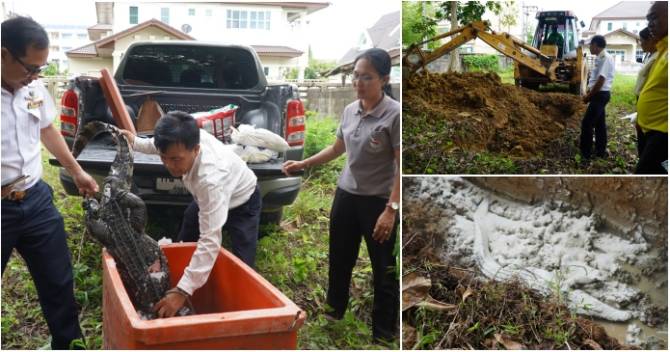 นำซากจระเข้ที่พบในคลองหลง ไปฝังแล้ว หลังทนพิษบาดเจ็บไม่ไหวขณะเข้าหน้าที่จับตัว