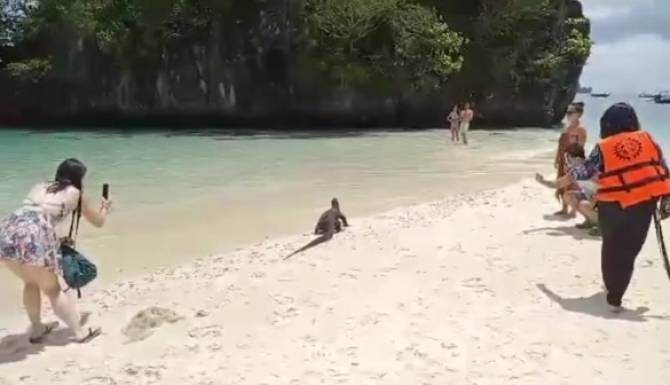 นทท.จีนกรี๊ดลั่นหาด หลังตะกวดเกือบ 2 เมตร คลานผ่าน