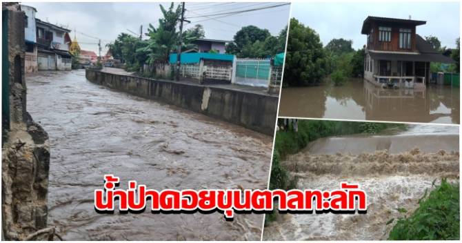 ฝนถล่มลำปาง! น้ำป่าดอยขุนตาลทะลักท่วมบ้าน 30 หลังคาเรือน ตลิ่งลำน้ำแม่ตาลพัง