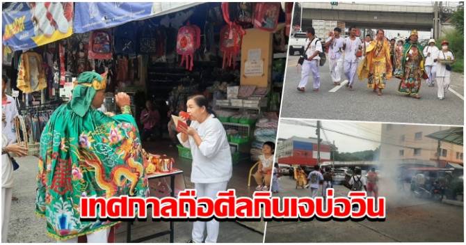 คึกคัก! ประเพณีแห่เจ้าเข้าทรง เทศกาลถือศีลกินเจบ่อวิน ประชาชนตั้งโต๊ะบูชารับขบวนแห่ม้าทรง