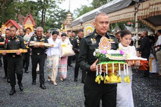 วันที่ 18 พฤศจิกายน 2566 เวลา 10.00 น. พันเอก ปองเชษฐ์ พูนช่วย ผู้บังคับการกรมทหารปืนใหญ่ที่ 5 พร้อมด้วย คุณ สุกัญจนา พูนช่วย ประธานสมาคมแม่บ้านทหารบก สาขา กรมทหารปืนใหญ่ที่ 5 และกำลังพลของหน่วย ร่วมพิธีทอดกฐินสามัคคีวัดมณีเจริญ ประจำปี 2566 เพื่อเป็นการส่งเสริมความรักความสามัคคีของประชาชนในพื้นที่และความศรัทธาของพุทธศาสนิกชน อีกทั้งยังเป็นการอนุรักษ์สืบสานประเพณีวัฒนธรรมอันดีงามให้อยู่คู่กับพระพุทธศาสนาอย่างมั่นคงสืบไป โดยมี พลตรี อภินันท์ แจ่มแจ้ง ผู้บัญชาการกองพลทหารราบที่ 5 เป็นประธานในพิธีฯ ณ วัดมณีเจริญ ต.แก้วแสน อ.นาบอน จ.นครศรีธรรมราช