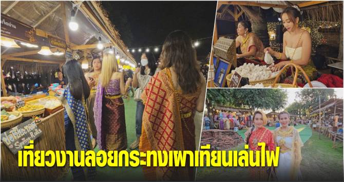 นทท.ใส่ชุดไทยเข้าเที่ยวงานลอยกระทงเผาเทียนเล่นไฟ จ.สุโขทัย
