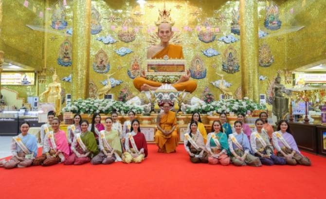 มิสแกรนด์นครปฐม กราบขอพร "หลวงพี่น้ำฝน"-สรีระสังขาร "หลวงพ่อพูล" ก่อนขึ้นเวทีรอบสุดท้าย