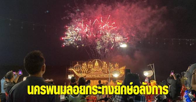 คืนเดือนเพ็ญคึกคัก! ทต.ธาตุพนมจัดเรือไฟโชว์ ควบกระทงยักษ์งามอลังการ