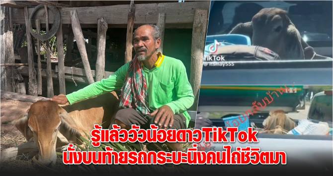 รู้แล้ววัวน้อยดาวTikTok นั่งบนท้ายรถกระบะนิ่งคนไถ่ชีวิตมา