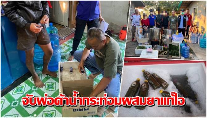 ปกครองสังขะสนธิกำลัง จับพ่อค้าน้ำกระท่อมผสมยาแก้ไอ ขายให้วัยรุ่นในหมู่บ้าน