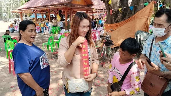 ส่วนที่ชาวบ้านต่างรอคอย เลขหางประทัด ได้แก่เลข 350,95 แถมยังไม่พลาดไปเก็บรายละเอียดส่อง หมายเลขทะเบียนรถยนต์ ของสาวดวงปัง บรรทุกไข่มาแก้บน เลข 4455 นักเสี่ยงโชคต่างนำเอาเลขเด็ดหางประทัดและเลขทะเบียนรถยนต์ ส่วนที่หน้าหลวงพ่อหยกขาว ได้เลขเซียมซี 53 นัดเสี่ยงโชคนำเลขไปเสี่ยงโชคกันงวดนี้